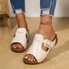 Wedge Heel Thick-soled Slippers Women's Large Size Round Head Casual One-pedal Solid Color Wedge Heel Cool Slippers Women's Outer Wear