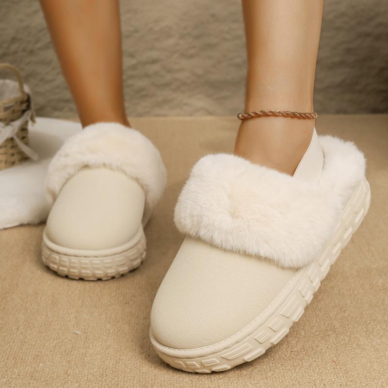 Winter New Thick-soled Snow Boots Women's Fleece Thickened Warm Large Cotton Shoes Integrated Leather and Fur Bread Fluffy Shoes