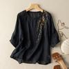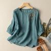 Cotton Short-sleeved Shirt Blouse Women Summer Retro Round Neck Loose Breathable Soft Fit Hemp T-shirt Tops