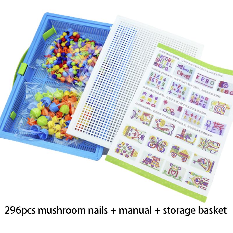 296PCS mushroom nail DIY handmade toys children's educational toyschildren's intelligent 3D puzzle game Jigsaw board gifts