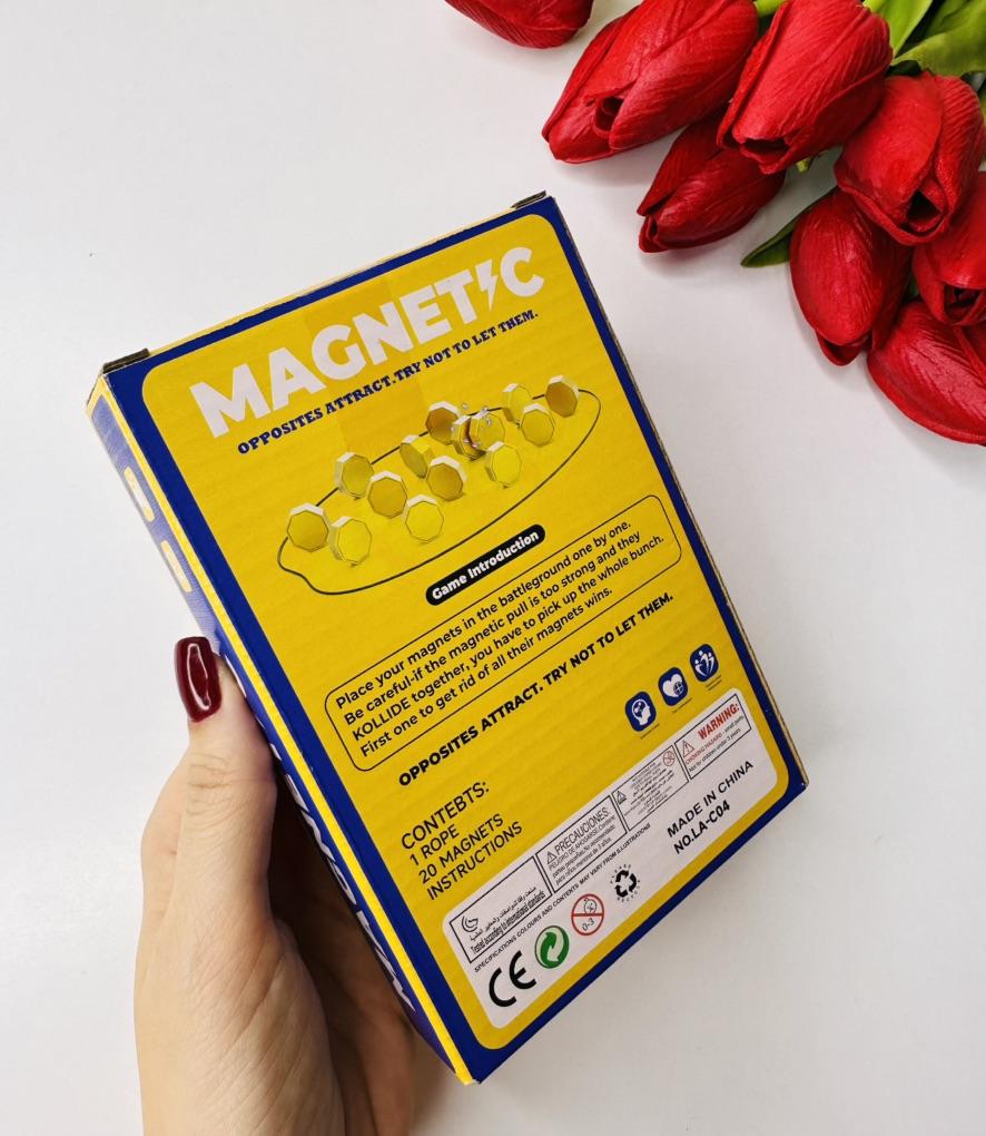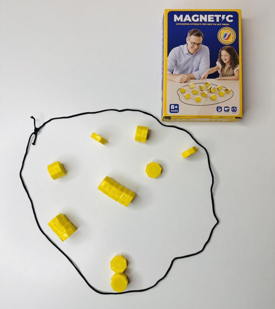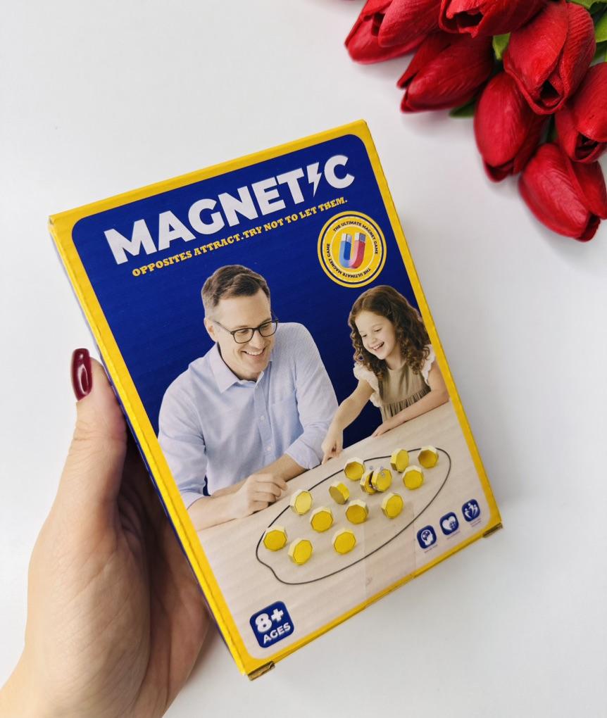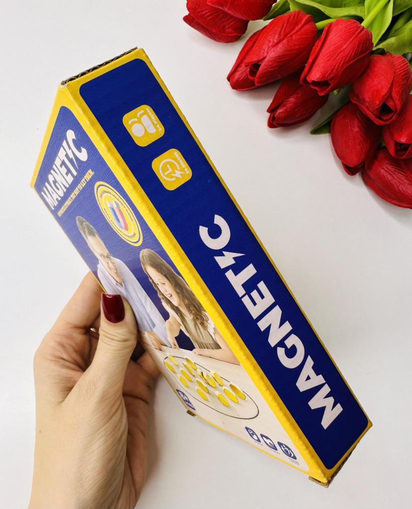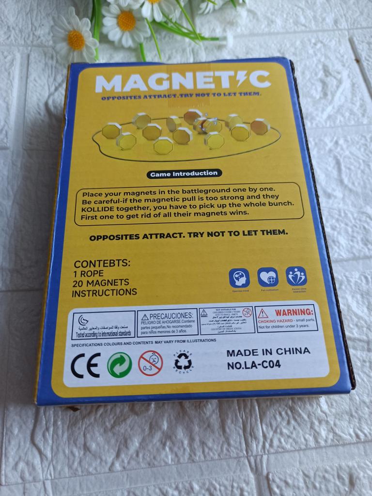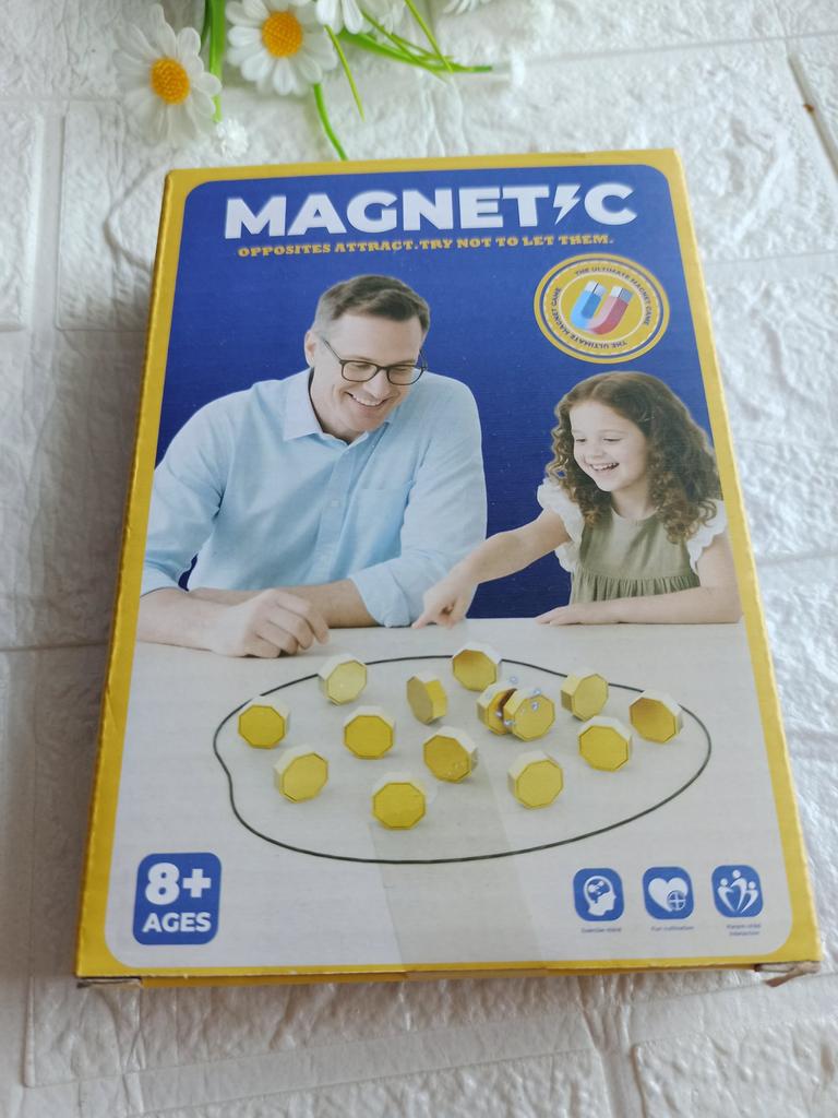 It is a strategy board game with magnetic pieces for children, adults, and seniors. Have a fun time with the family with this great game that has a simple but very entertaining aspect, have a great time. πππππ I recommend it π. π¦ Package content: A strategy board game with 20 magnetic pieces. πPros: Sent to Spain in 25 days.βοΈ Well protected for the journey. Excellent presentation in its box. Quality according to the product it is. It's a strategy and thinking game for the whole family. Can be played solo. Have a fun time with your family or friends with this great game with a simple but very fun aspect. Place the pieces in the circle of and try to prevent them from joining due to magnetism, whoever runs out of pieces first wins. πCons: nothing to write home about. .