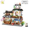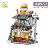 HUIQIBAO City Mini Street View Panda Tea House Model Building Blocks DIY Little Bear Coffee Shop Bricks Toys for Children Adult