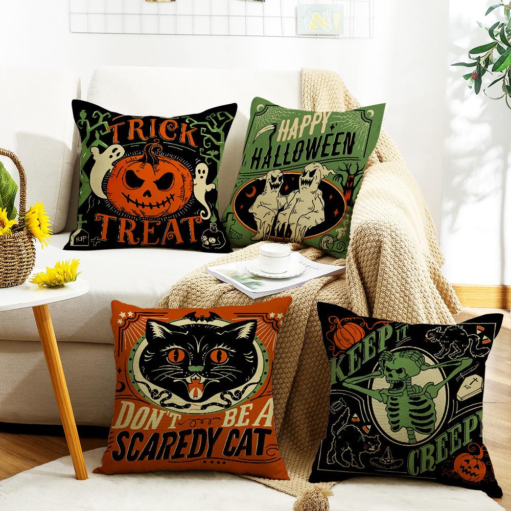 New Halloween Pumpkin Pillow Cover Skeleton Cat Decoration Sofa Bedroom Pillow Cover Bedside Backrest