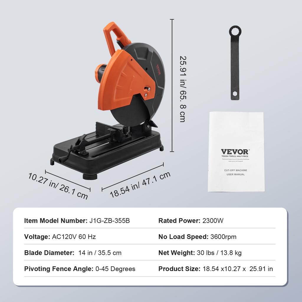 SucceBuy 2300W Abrasive Chop Saw 14"/355mm Blade Diameter Cut Off Saw Steel Cutting Machine 0-45° Adjustable Angle Miter Saw