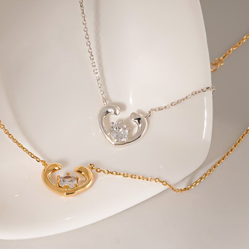 JEWNEL Silver925 Lovely Line Heart Cubic Point Necklace (2 Colors)