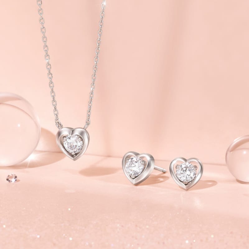 J.ESTINA WHITEMOND Heart Frame Necklace + Earrings Set (SET-J0-0108)