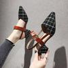 Lady Shoes New Hollow Coarse Sandals High -Heeled Shallow Mouth Pointed Pumps Work Women Female Sexy High Heels Zapatilla Lattice