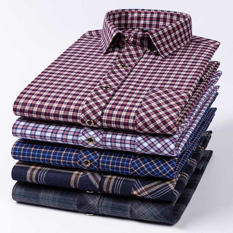 New Cotton Flannel Shirts For Men's Long Sleeve Soft Regular-fit Brushed Single Pocket Comfortable Casual Fashion Plaid Shirts