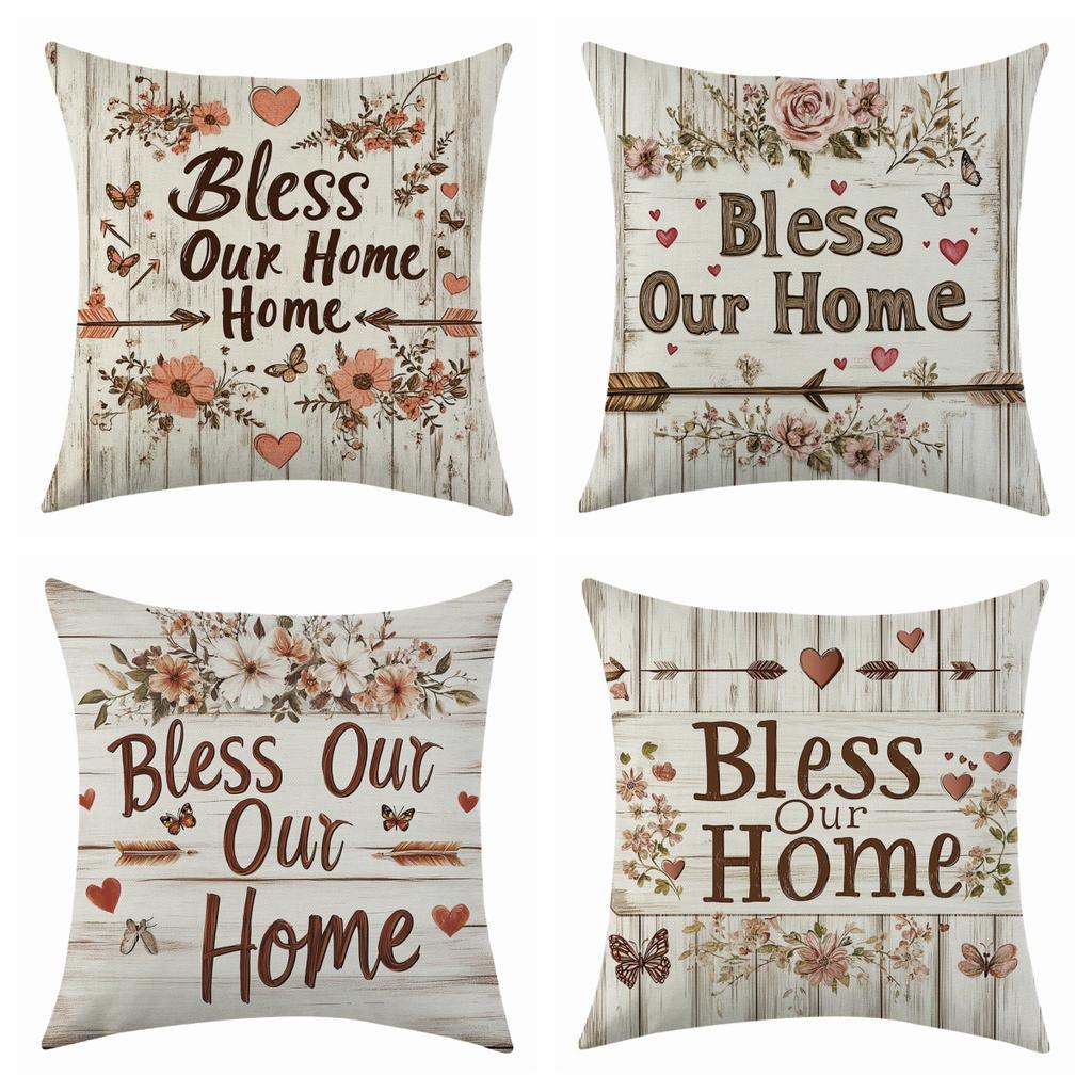 New Floral Linen Pillowcase for Holiday Decoration, Car Sofa Lumbar Pillow and Cushion Cover