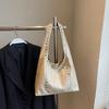 Women's Retro Rivet Solid Color Commuting Travel Shopping Tote Bag Versatile Large Capacity Shoulder Bag CLE