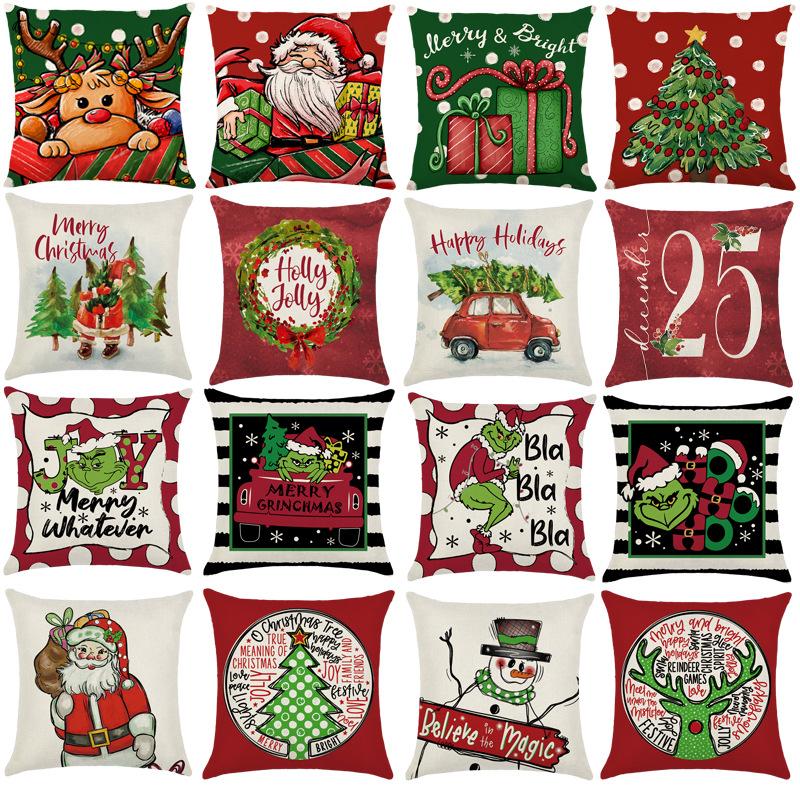 New Christmas Pillow Cover Elk Snowman Linen Sofa Pillow Household Products