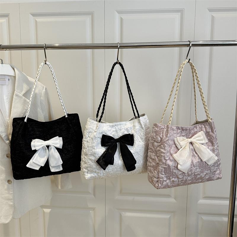 Women's Fashion Bow Tote Bag - Contemporary Color-Block Pattern with Luxe Touch, Ideal for Work & Weekend Activities CLE