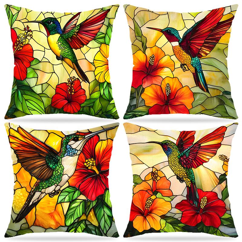 Flower and Bird Series Pillow Cover Spring Plant Flower Print Sofa Cushion Cover Living Room Bedroom Cushion