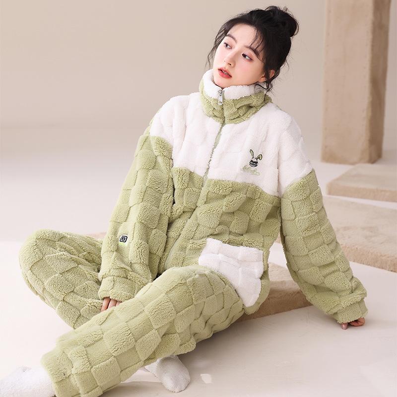 Women's Flannel Jacquard Pajamas - Zippered, Thickened, Warm Autumn/Winter Outerwear