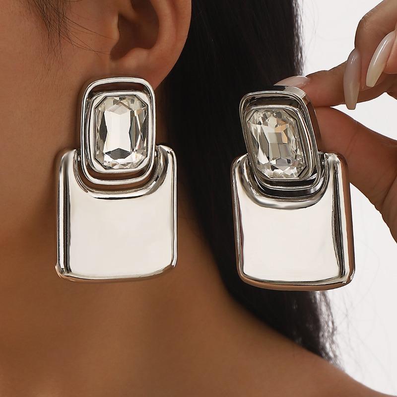 Heavy Industry Exaggerated Mirror Alloy Square Rhinestone Earrings Light Luxury Design Unique High-end Earrings