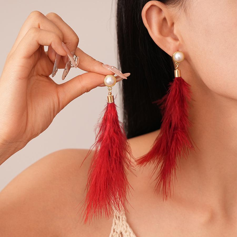Retro Feather Pearl Silver Earrings: Ethnic Style for Autumn/Winter