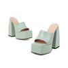 KNCOKAR 2025 New Spring and Autumn Large Size Thick Bottom High Heel Square Toe Sleeve Fashion Sandals 34-43