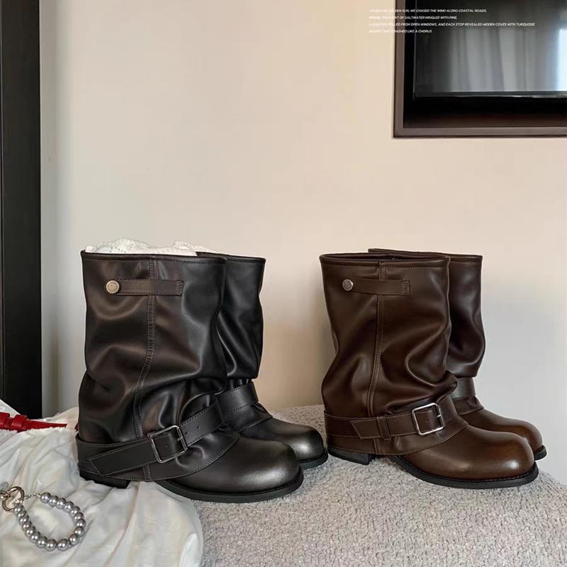 Autumn Winter Women Western Ankle Boots Fashion Belt Buckle Thick Heel Shoes Ladies Elegant Party Dress Short Booties