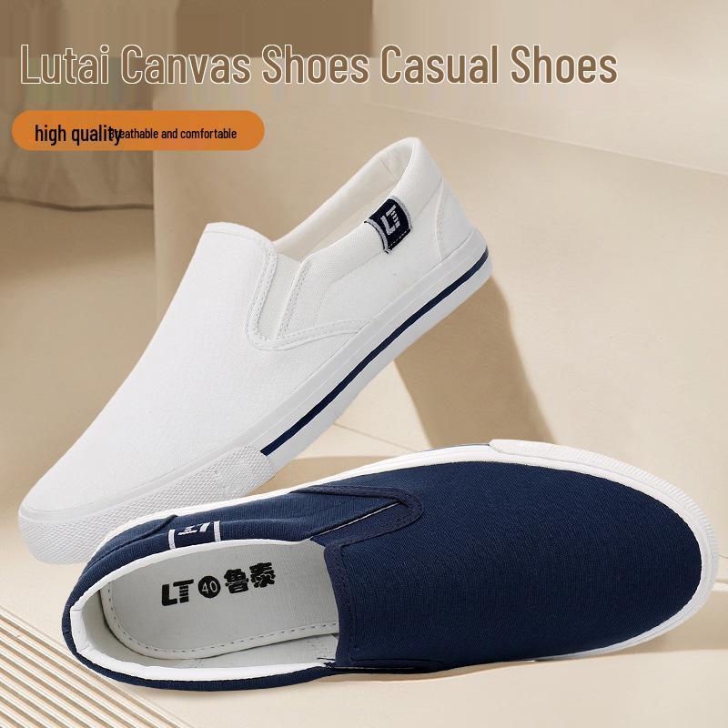 Women's White Thick-Soled Slip-On Canvas Shoes - Casual Autumn Student Footwear