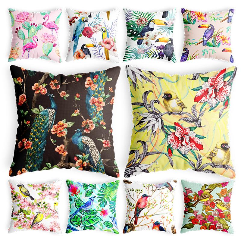 New Chinese Style Pillowcase with Flower and Bird Digital Printing, Thickened Fabric Cushion Cover, Special Bedside Office Car Cushion Cover
