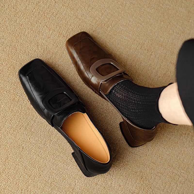 Square Head Versatile Light Mouth Single Shoes Women's Spring and Autumn New Thick Heel Leather Fashion Commuter Small Leather Shoes Women