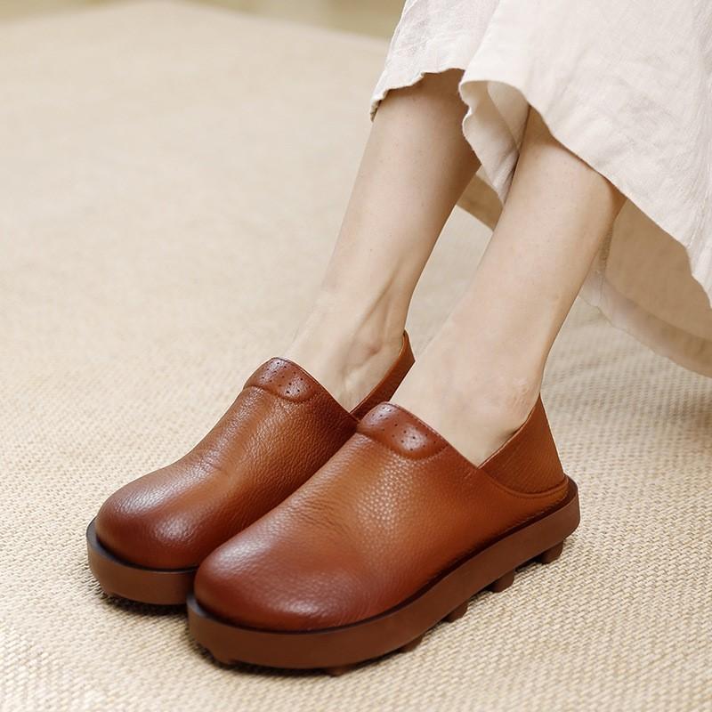 GKTINOO Vintage 2025 Autumn New Thick Sole Flat Shoes Women Handmade Round Toe Solid Color Comfortable Leisure Slip-on Shoes