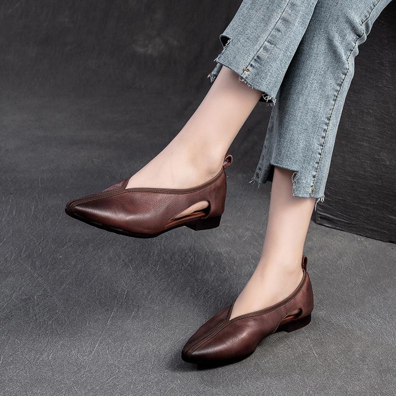 GKTINOO 2024 Autumn New Hollow Breathable Pointed Flat Shoes Retro Genuine Leather Soft Sole Women's Slip-on Shoes