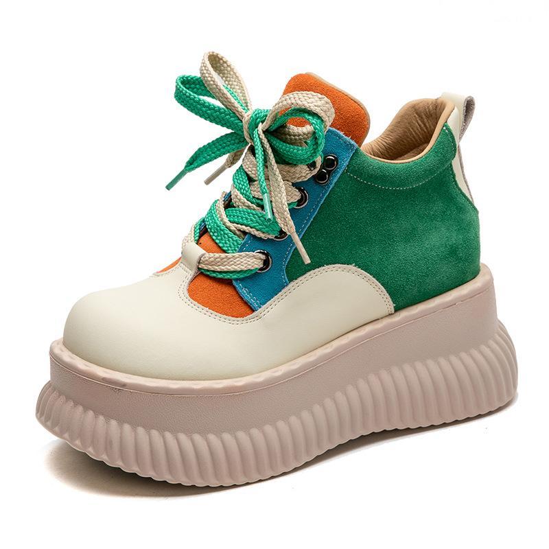 GKTINOO 2025 Spring New Genuine Leather Flat Platform Shoes Mixed Colors Thick Sole Shoes For Casual Sneakers Women's Shoes