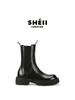 Ins Women's Boots~ Washed Horsehide Pleated Thick Sole Heightened Chelsea Elastic Martin Short Boots Women's Cigarette Boots Autumn and Winter