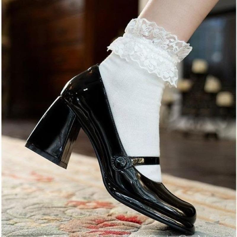 Retro Mary Jane Shoes for Women Square Head Thick Heel Black Versatile High Heels French Single Shoes Spring Summer Autumn