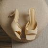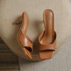 Size 34-40 Women Heeled Mules Sandals Soft Leather High Heels Summer Shoes For Women Slippers Vintage Open Toe Slides