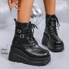 Fashion Gothic Punk Platform Boots for Women Fashion Double Buckle Wedge High Heel Ankle Boots Woman Thick Bottom Black Combat Booties
