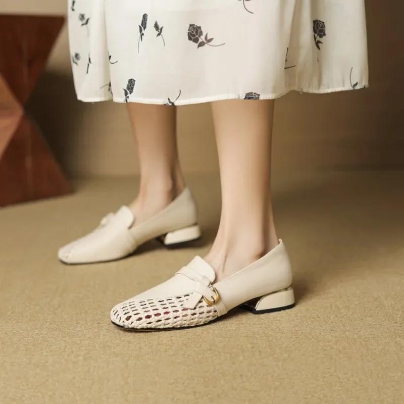Fashion High Quality Women's Shoes 2025 Fashion Slip-on High Heels New Square Toe Daily Pumps Women Outdoor Hollow Out Best Seller Women