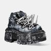 Fashion Spring and Autumn Gothic Dark Black Platform Thick Bottom Punk Metal Height-Creasing Leather Shoes Rivet Women's Boots Pumps