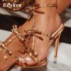 Eilyken Design Style Round Toe Buckle Strap Woman Sandals Fashion Crystal Thin High Heels Stripper Party Ladies Shoes