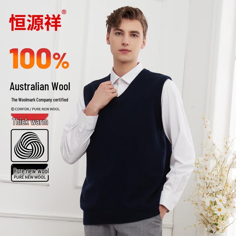 Hengyuanxiang Men's 100% Wool V-Neck Knit Vest