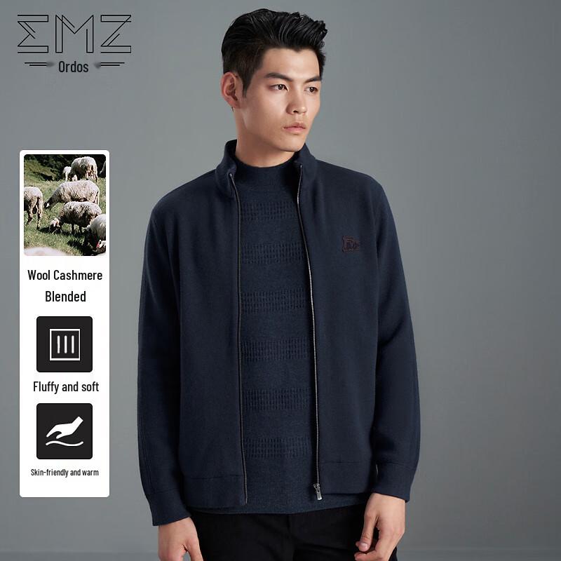 EMZ Erdos Men's Wool Cashmere Blend Stand Collar Cardigan