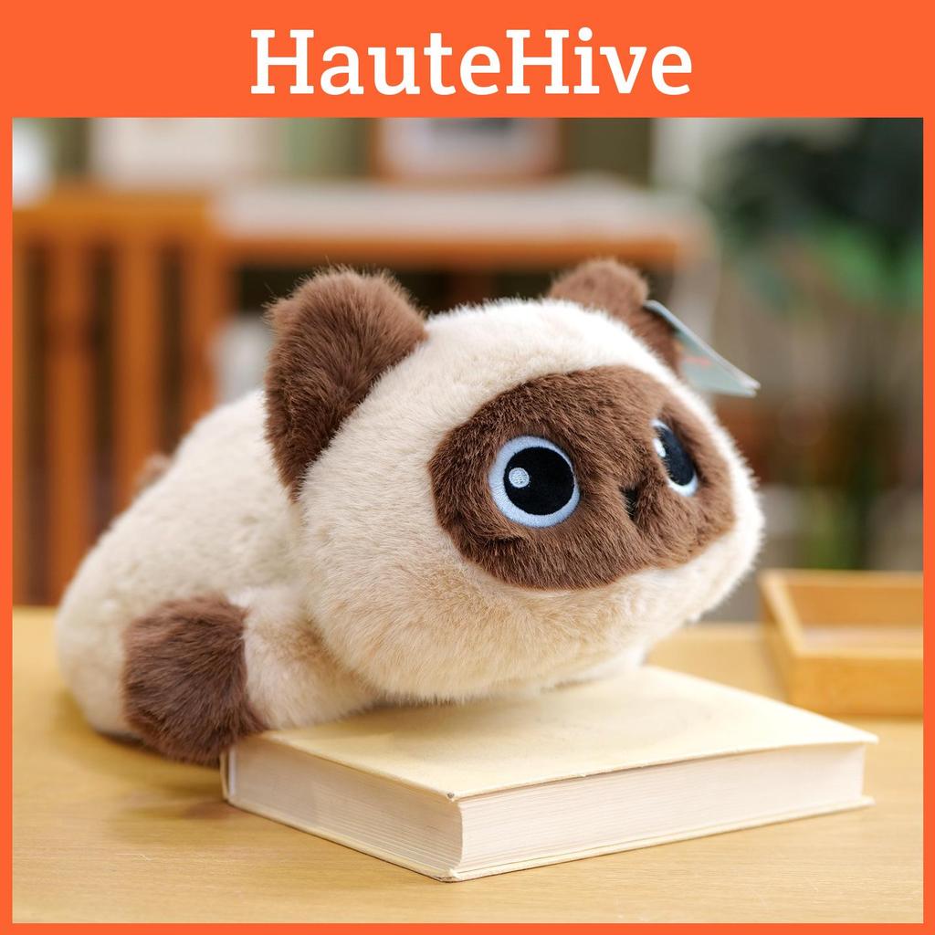 This short plush Siamese cat stuffed doll features realistic animal design and measures approximately 30 cm in length, crafted from soft, durable short pile plush and filled with lightweight PP cotton for a plush feel. The hanging keychain, around 17 cm, offers versatile display options. Ideal for kids play or collector displays, this plush toy provides a charming addition to any collection. Easy to clean, it can be wiped with a damp cloth to maintain its appearance.