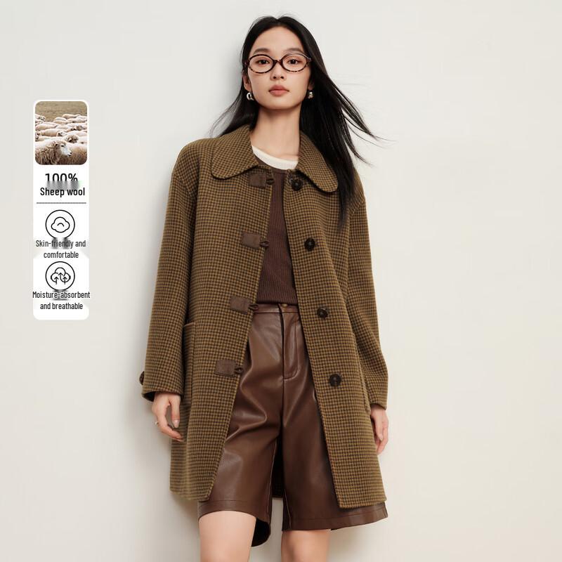 Elva's Island Women's Elegant Short Double-Faced Wool Coat