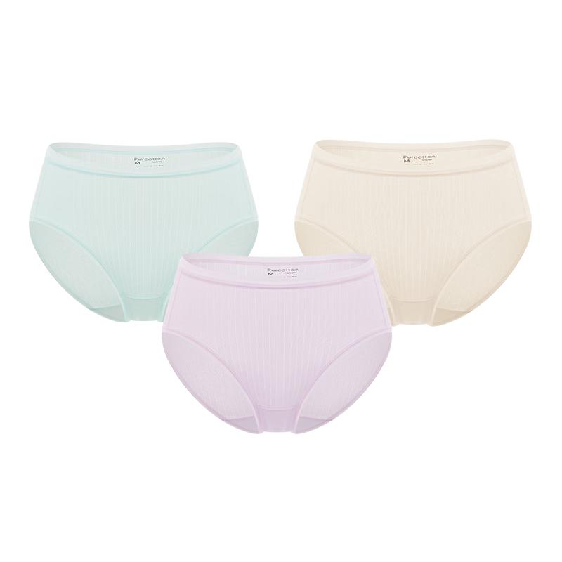 PurCotton Women's 5A Antibacterial Breathable Mid-Waist Cotton Underwear 3-Pack