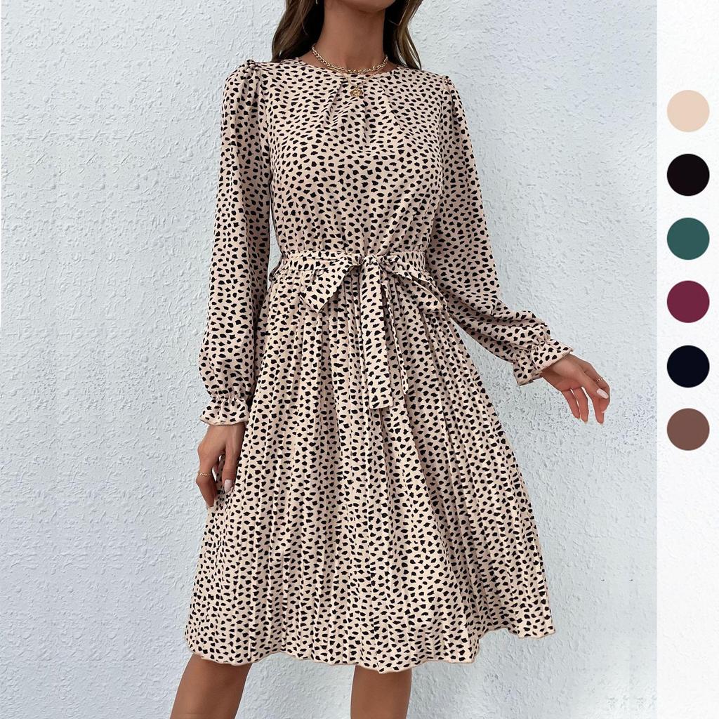 Elevate your autumn wardrobe with this stylish women's dress, featuring a bold leopard print design. The long sleeves and tie-up detail add a touch of sophistication, making it perfect for both casual outings and more formal occasions. Crafted from high-quality polyester, it offers a comfortable and flattering fit, ensuring you feel chic and confident all season long.