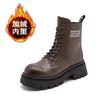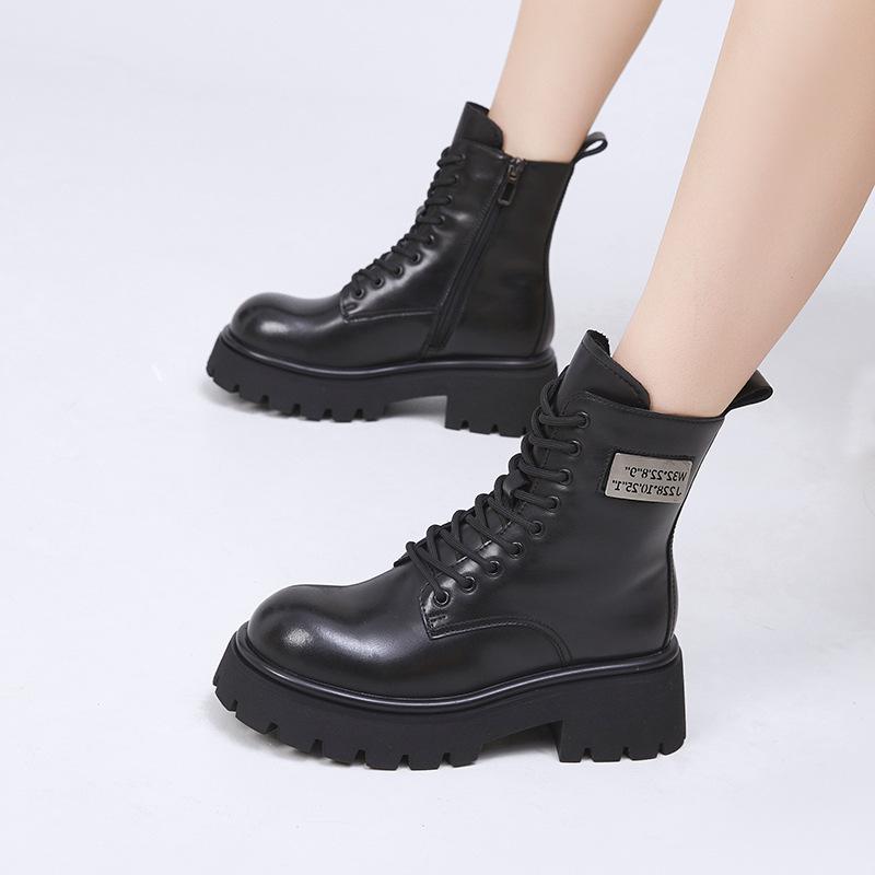 Leather Martin Boots Women's 2025 Winter New Medium Tube Women's Boots Thick-soled Heightening Velvet British Style Versatile Short Boots