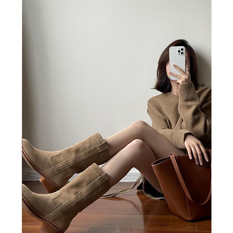 Korean Style Autumn and Winter New Short Boots Women's Ins Street Style Matte Leather Round Head Loose Knight Boots Flat-bottomed Medium Boots