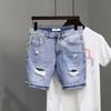 Men's Korean Style Slim Summer Denim Shorts with Distressed Details