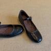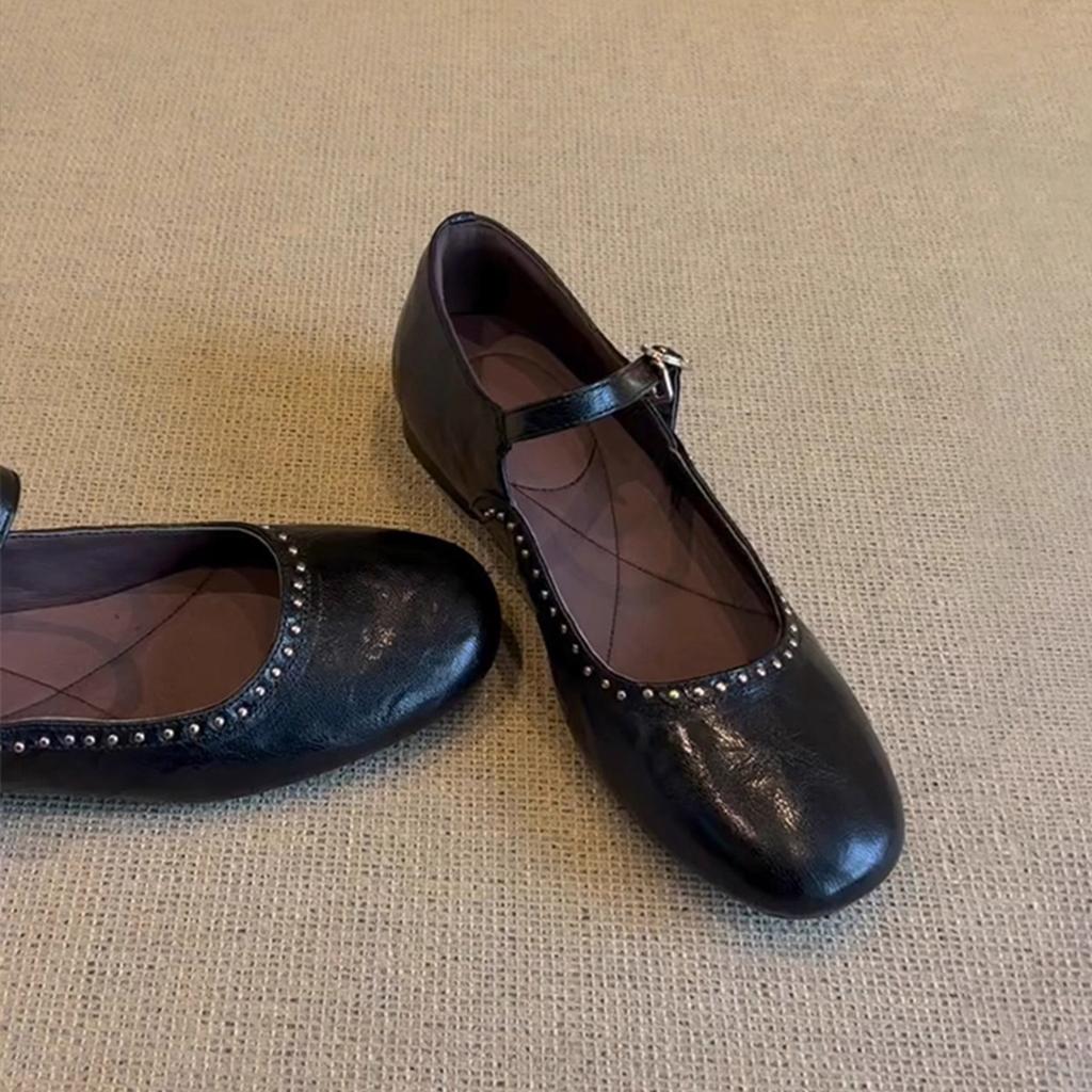 Sheepskin Version~ Spring New Shallow Mouth One-word Buckle Leather Single Shoes Women's Versatile Rivets Flat Bottom Round Head Mary Jane Shoes