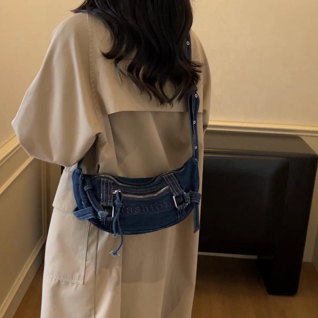 Large Capacity Commuter Tote Bag Women's Denim Shoulder Crossbody Bag