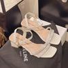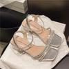 Summer 2025 New Niche High-heeled Sandals Women's Transparent Thick Heel with Crystal Rhinestones with Skirt Sandals