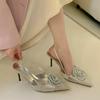 Foreign Trade Large Size Pointed High Heels Women's Summer 2025 New Fashion Rose Sandals Empty Stiletto Shoes
