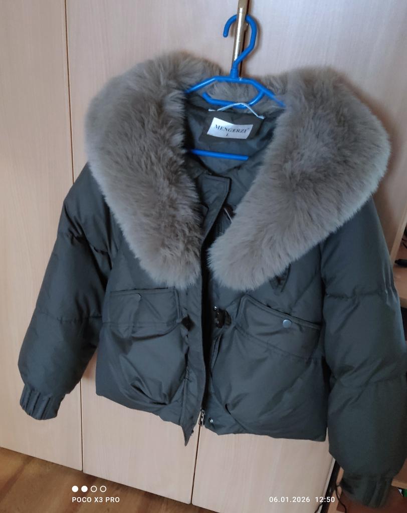 Winter Women's Cotton Jacket with Down, Trendy Style, Unique Street Style, Large Fur Collar, Short Hooded Cotton Coat