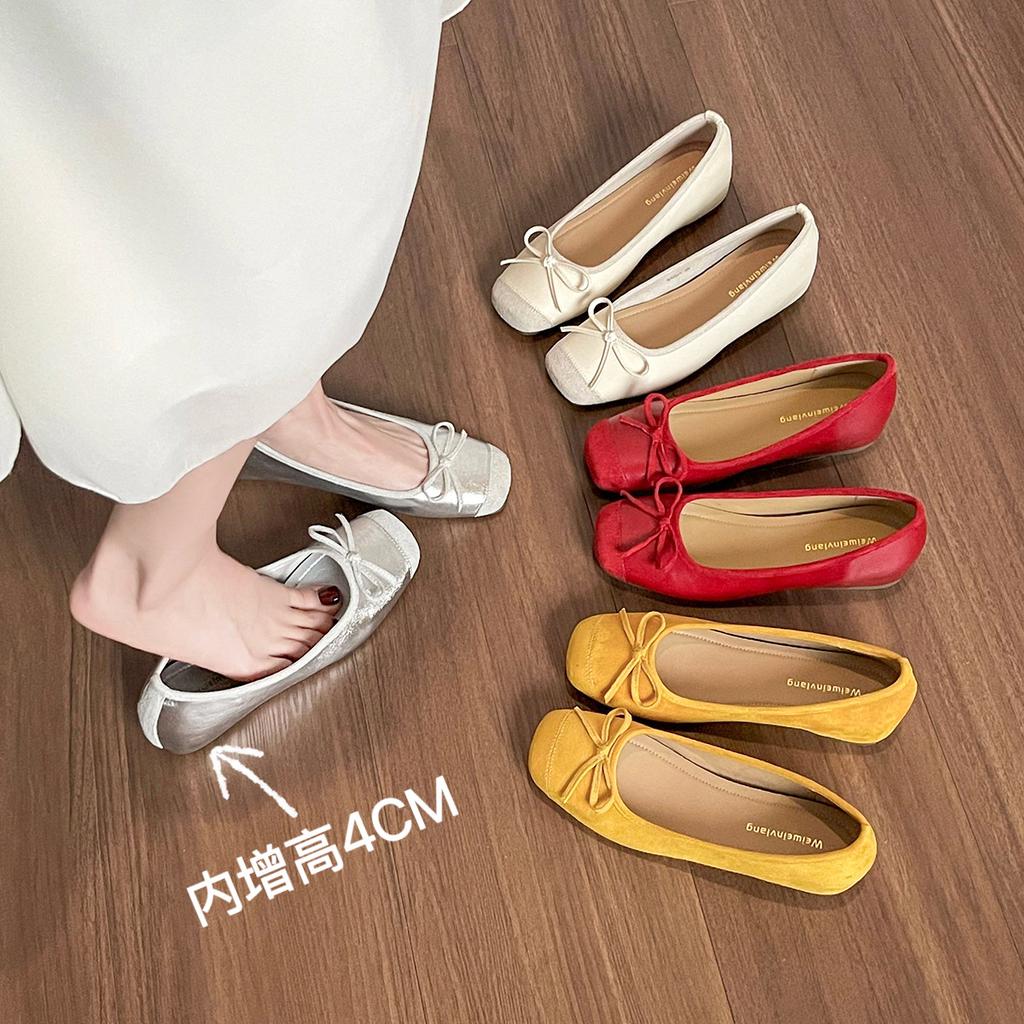 Weiwei Girl 865-1 French Fairy Style Bow Inner Height-increasing Single Shoes Female Shallow Mouth Gentle Evening Ballet Shoes
